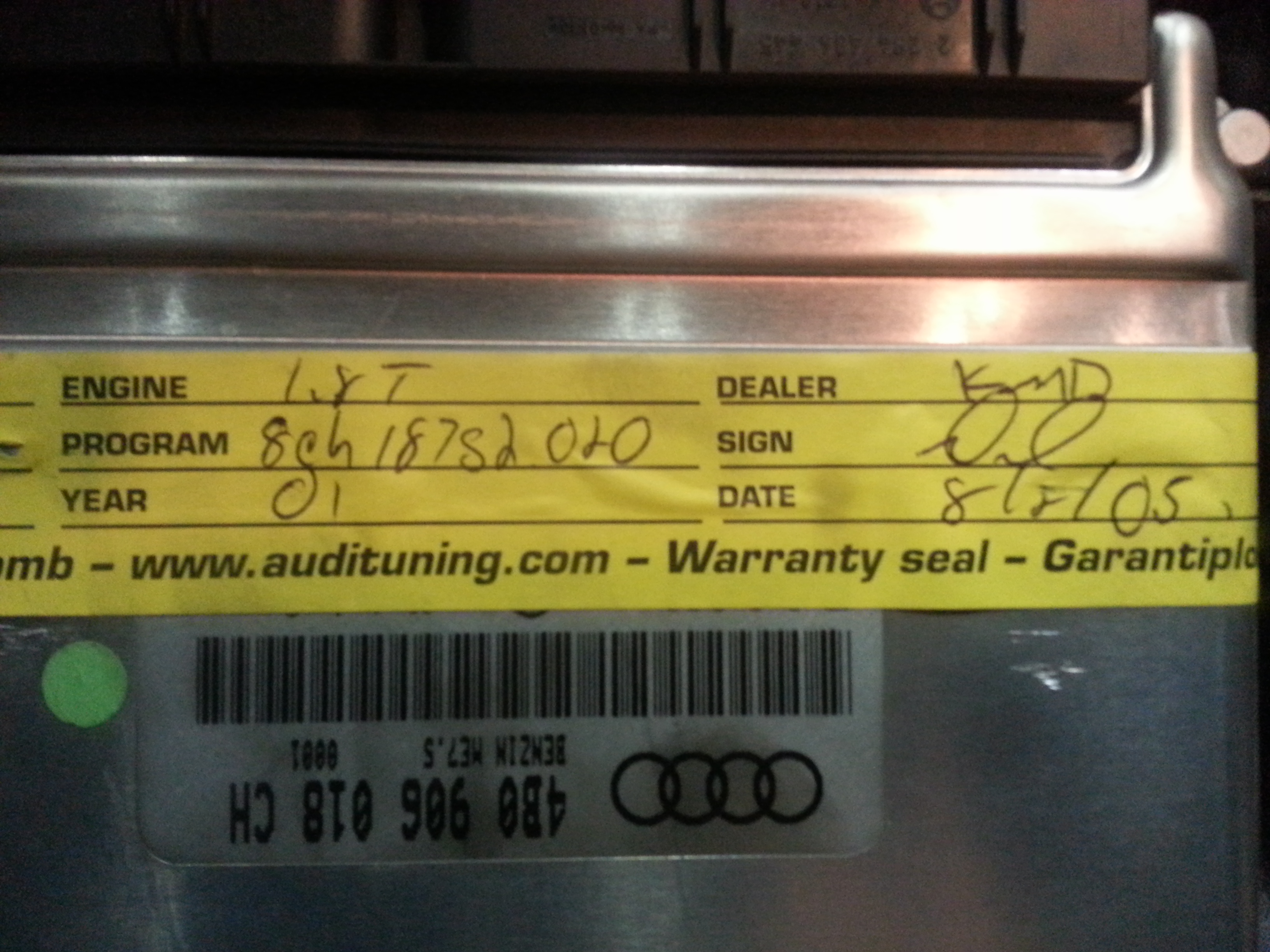 Selling my B5 1.8T Dahlback 93 OCT Chipped ECU I purchased from KMD Tuning in NJ a few years back I will include the original receipt. The ECU is from a manual 5 speed 2001.5 B5 A4 1.8T. Dahlback doesn't do reflashing there is an actual chip soldered on the ECU.