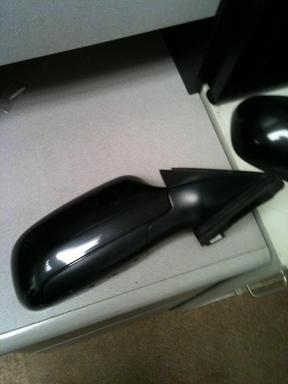 Passenger mirror has ebony pearl cover, driver side has brilliant black. The glass is pretty much shot on both sides. I got a deal on some other mirror assemblies that had good glass, so I just switched out the whole things. $40 for the pair.
