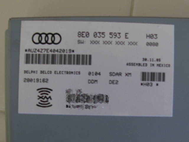 I'm selling an Audi XM Receiver (8E0 035 593 E) for $100.00 because I purchased a new car and have no more use for this item. It's in excellent condition. If you're interested please contact me with any questions, comments, or concerns.