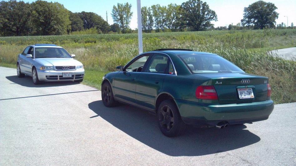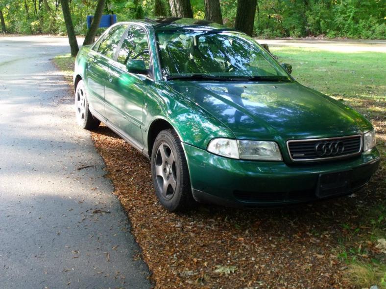 I have a 1998 Audi A4 2.8 V6 Quattro with a 5 speed. It has 130K miles on it. I bought it with 104K I'm ready to turn a new leaf and find something else. This car has not been messed with and I'm the 3rd owner. Things that I've done are as follows...Stock S4 exhaust cat back New clutch and resurfaced flywheel at 120KNew (both) rear wheel bearings Alignment HID's (may be included in sale for $50)Regular maintenance at 3500 miles with Synthetic Mobil-1The car is green which from what I've seen is pretty rare. I don't see a lot of green A4's. Mostly blue white and black so it's unique.Title is clear and in hand.