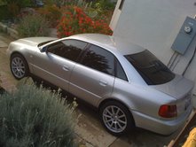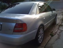 It's a 2000 Audi A4 Quattro with a 2.8 liter 6 cylinder motor. It has a 5 speed manual transmission. I've had the car for about 2yrs. It has 125,000 miles and runs well. It has 4 Flik Justice 17x8 wheels with Nexen N3000 225/45/17's that were purchased in Oct. '07. There's lots of life left on the tires.