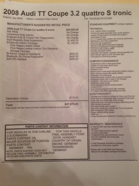 2008 TT 3.6 Coupe quattro $25K only 36.6K miles