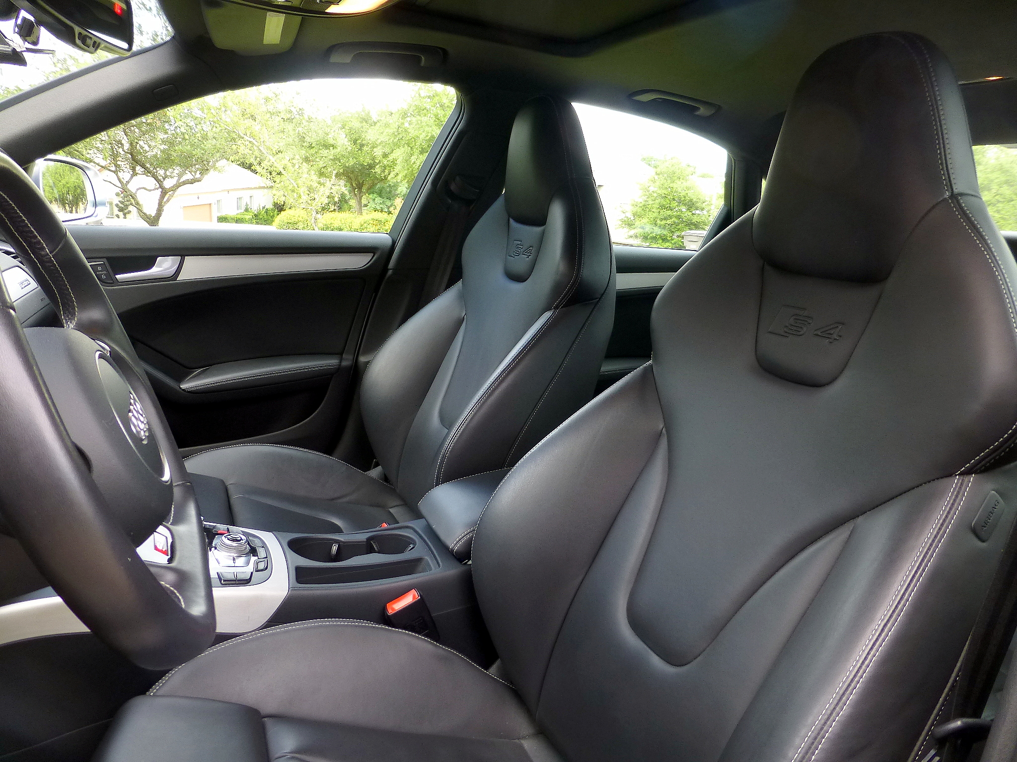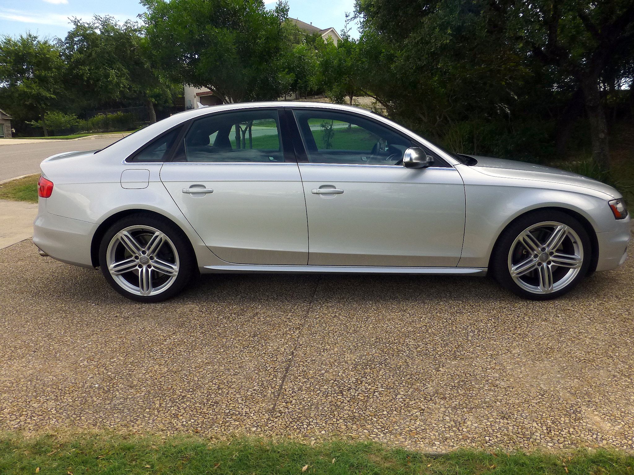 OPTIONS: Ice silver metallic exterior; all-black Nappa leather seats and interior; MMI Navigation Plus package has HD Radio, Sirius XM, navigation w/ voice control, color driver information display, Audi parking system plus w/ rearview camera, Audi Connect w/ online services; Quattro w/ sports differential; Audi adaptive damping suspension; Bang & Olufsen Sound System; 19" 5-segment-spoke wheels w/ Michelin 255/35-ZR19 summer tires; Audi side assist (lane-change warning); K&N air filter; New Hawk HPS 5.0 brake pads; V1 radar detector mount; Trunk liner; 2 key fobs; valet key; Audi tire guage; touch-up paint pen.