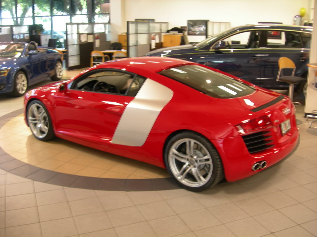 Hello I work for Audi Jacksonville in Jacksonville Fl and we have one R8 on the showroom for sale. This was one our owner bought and put in the showroom to have people come look and see it in person and then place an order for theirs. Well the time has come to sell this one.
