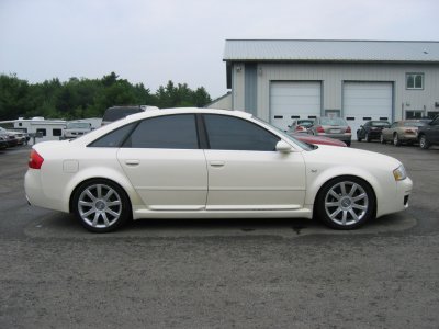 This car is a 2001 A6 quattro 4.2 V8. But the brakes, interior, suspension, ground FX, & exhaust were all swapped in from a wrecked 2003 RS6. It has the stock low mileage 300-320 HP naturally aspirated 4.2 liter V8. NOT the twin turbo RS6 V8... sorry. Currently around 58,xxx miles. It had a salvage title since 27,000 miles when I got it. I got smashed into a couple weeks ago and probably won't have it repaired.