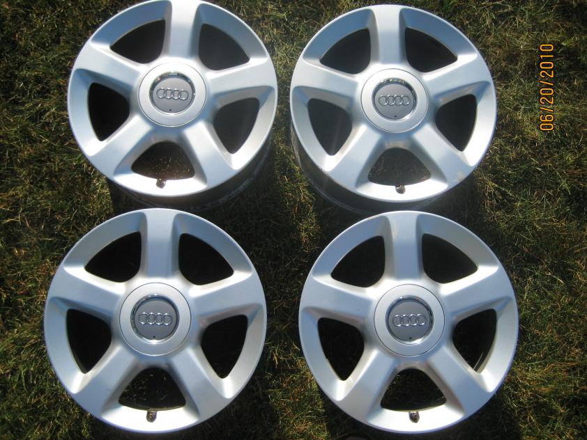 Set of 4 OEM Sport Package wheels from a 2003 A6. I removed these wheels at approx. 5,000 miles and they've been sitting in my garage ever since. They are in excellent condition with 2 minor scratches, boxed and ready for shipping. Send me a PM if interested.