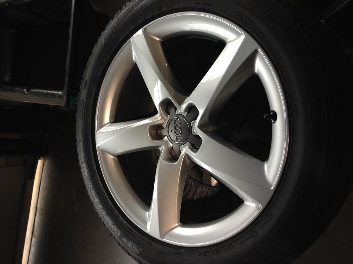 Looking to sell a complete set of 4 dunlop sp winter sport 3d tires 235/50 R19 108H with OEM Audi rims that came off of a 2013 audi s8 v8 4.0L. These tires and rims both have less than 3K miles on them as they were used for one season and removed from the vehicle. All rims and tires are in near perfect condition with no dings dents scrapes or scratches or bends. All rims have center caps and manufacturer's storage bags. The tires as well are in near brand new condition as shown in the photo. Items are being sold from a well known and respected auto repair facility. I will refund your money minus the cost of shipping if you are unsatisfied with these items for any reason. Please feel free to call/email me with any questions. Retail price on this package new would exceed $5,200. As per a local Audi dealership - new rims - $964 each; center caps - $94 each; tires - $264 each. 631-665-5550 ask for Steve. I'm asking $2500 plus ship.