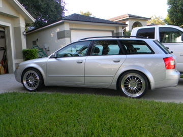 I have a set of Genuine HRE 3 piece wheels and tires off of my 2005 A4 Avant. They are in excellent condition with no curbage or blems at all. The tires are BF Goodrich GForce 235/35/19 with 6.5 to 7/32nds. Thry are all the same measurement and that is 19x8 with a +39 offset. They fit perfectly on my A4 with no rubbing or spacers needed. These wheels were 1500+ each when new and my loss is your gain. Asking $2000.00 + shipping. Local pickup available. Located in central Florida. Contact me at mycars.two@verizon.net or cell 7275432387