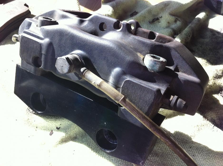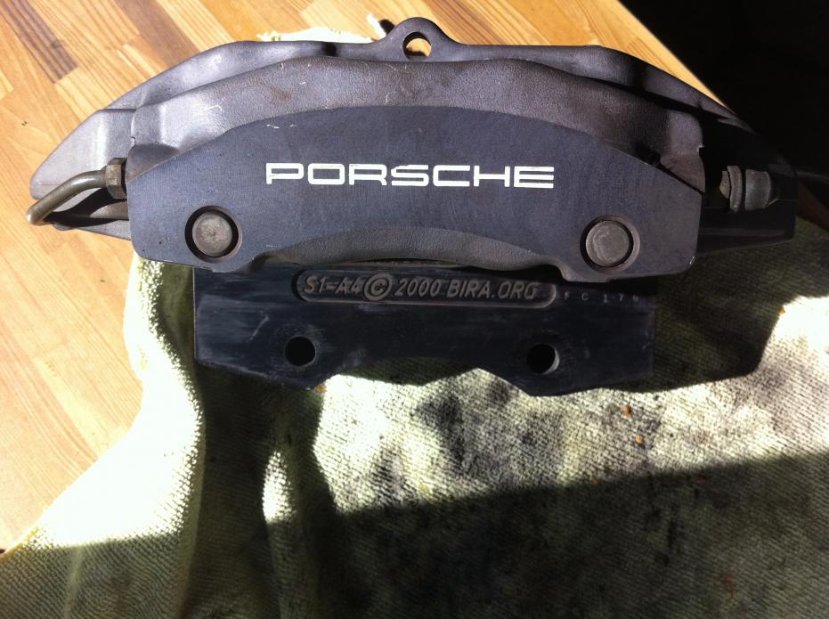 The kit includes A8 rotors, Porsche Boxster 4-piston monobloc calipers, the BIRA brackets, pads, speedbleeders, brake lines to install, etc.