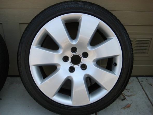 OEM 18" wheels and tires from my 2006 A6. The wheels are 18" x 8" and the tires are Continental ProContacts - 245/40. The wheels are in excellent shape and the tires have 20k miles on them, but have plenty of tread left. You can see additional pics at http://www1.snapfish.com/thumbnailsh...169/t_=7502169