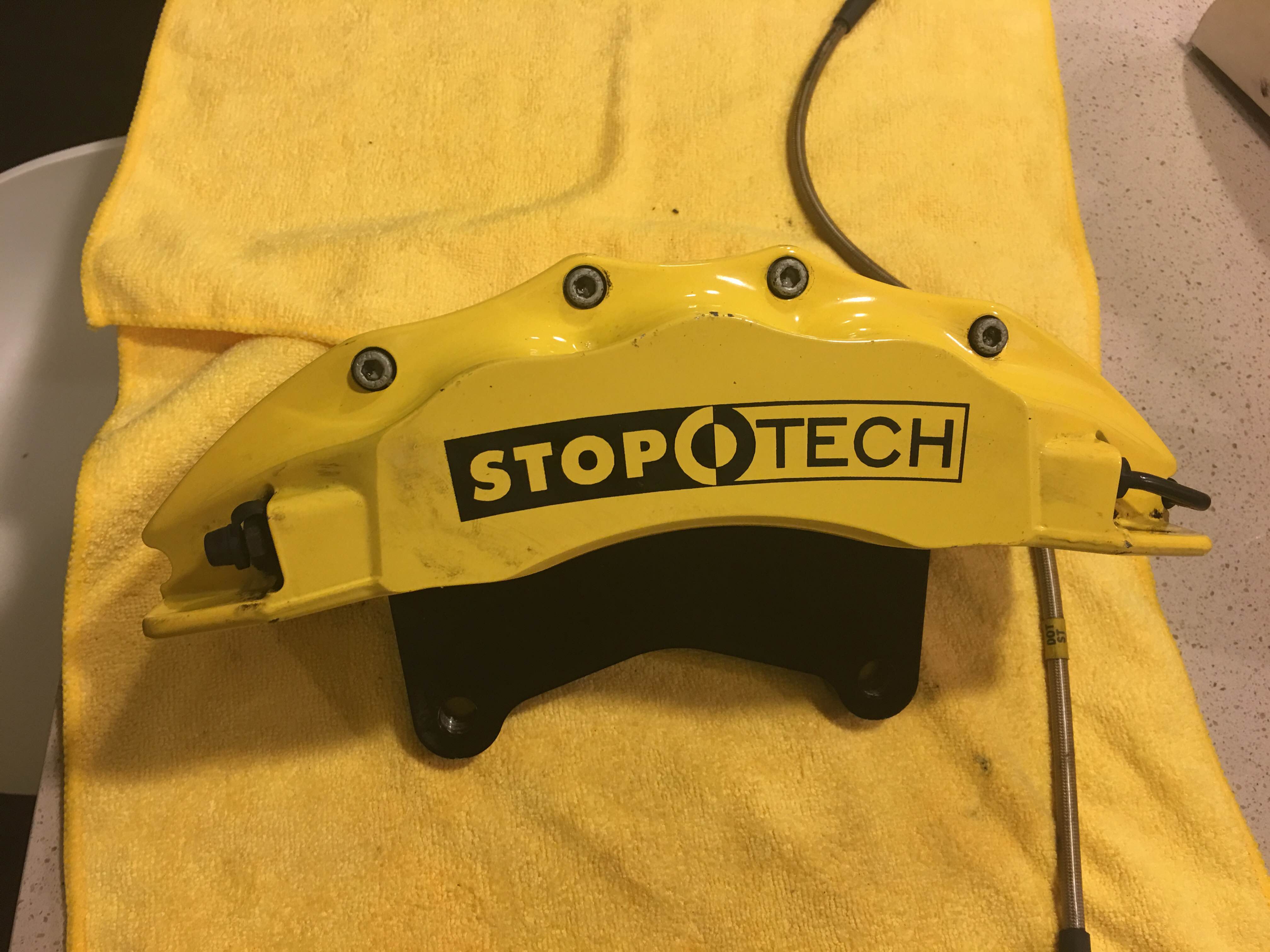 Up for sale is a slightly used Stoptech 380MM BBK. Selling for a friend, I just took them off of his 2011 S4. Haven't had a chance to clean them yet but will be spotless when shipped. Brakes are in great shape and only daily driven. Haven't seen a track. Pads are excellent as well as the rotors (not warped and brake smoothly). Also comes with steel braided lines. I can get more pictures on request (again sorry for how dirty they are I just took them off). Any questions feel free to pm me. Payment will be made by PayPal or local pickup. Located in Portland, Oregon. Asking $2600 obo. Thanks!