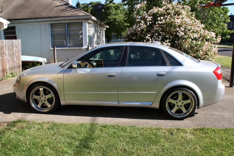Beautiful set of wheels off my (new to me) 2004 Audi S4. 19" staggered Axis Milano's with as-new BFGoodrich GForce T/A KDW's (Ultra High Perffomance summer tires). Front 245/35 ZR19, rear 265/30ZR19. Wheels are in nice shape with some minor curb rash (I tried to show the worst of it in one of the photo's). Tires were mounted by the dealer I just bought the car from, so I'd guess they have less than 200 miles on them as of this writing. Still have the little nubs on them and all.