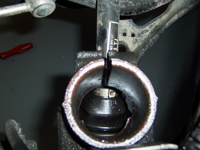 Attachment 38652 THe problem is, I cant seem to get the assembly pushed down far enough to release the strut completely. The whole piece the socket is part of is hitting the sway bar and pretty much can't go any further down. 1) Yes I've disconnected the sway bar link from the strut itself. 2) I've even unbolted the lower ball-socket from the lower a-arm. 3) I've loosened the drive shaft bolt -- but not completely taken it out. I'm stuck right now and could use some help ASAP. I'll get some pictures in a few minutes.. |