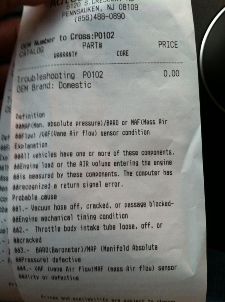 P0102-MAF problem. try MAF cleaner, check wiring, replace MAF sensor
