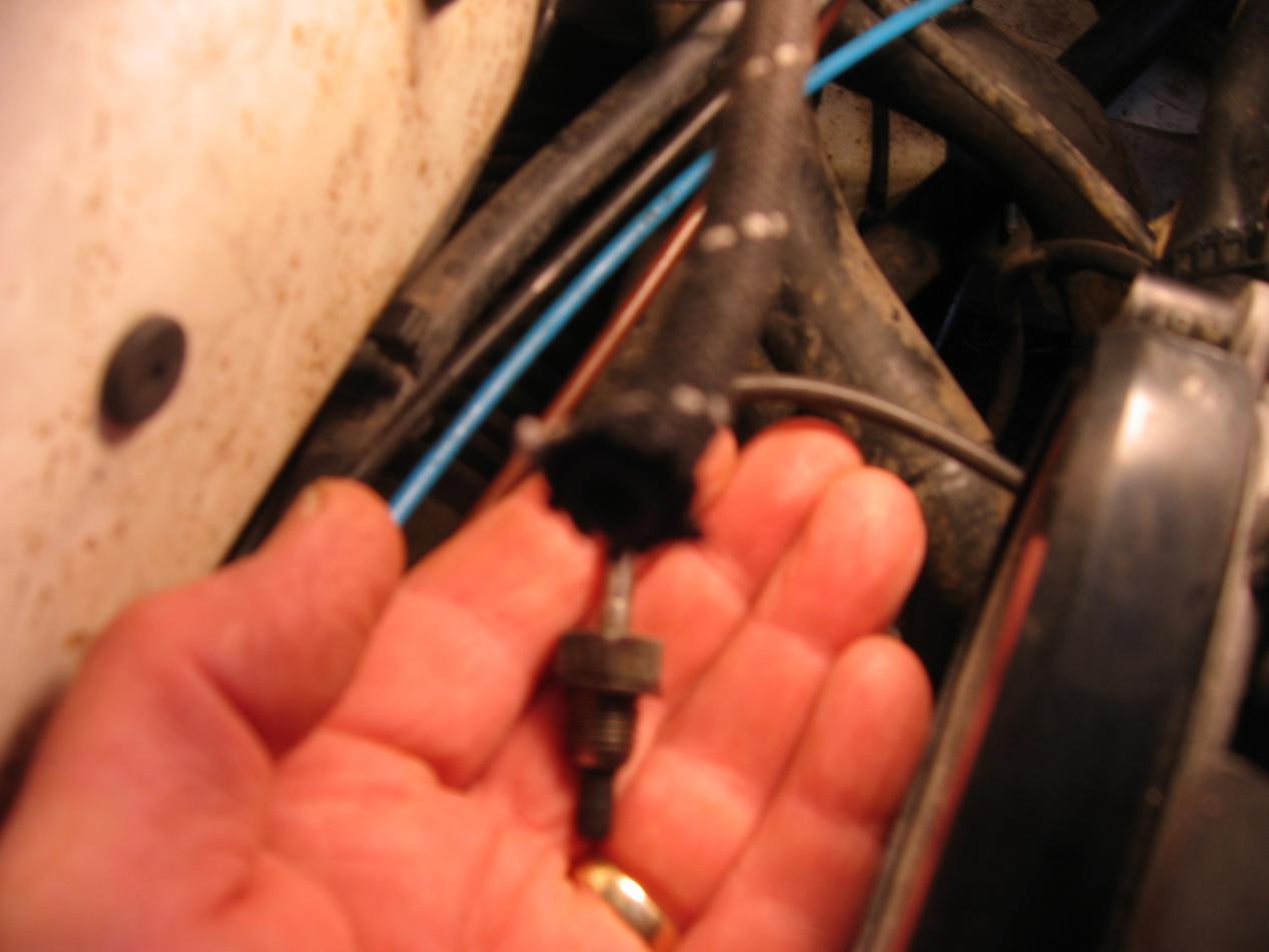 Well, here's Monday's results: New plugs, plug wires, almost all components plugged in/hooked up, save for the MAF system and wonder of wonders, it fires! Of course, it won't hold an idle yet but it sure sounded sweet, ever so briefly. Unfortunately, I watched about 1/2 quart of the expensive Petosin Pink antifreeze drain out from a barely visible but unattached cooling hose () but got it secured and no further fluid leaks. What I do have (and my memory is failing me here) is a renegade small wired sensor that I found danglin in the darkness just below the throttle body, quietly and unobtrusively resting against the top of the bell housing. It is about 1 1/2" long, threaded with a sealing washer, does not look like it's been wet (oil/fuel) but does look a bit carbonized (exhaust?). It is a very small two-wired but insulated unit and, for the life of me, I cannot chase down it's home back there because of all the now-present traffic from other wires, vacuum lines, etc.. Any ideas would be most welcome as I'm at a loss and am going hunting with my lil' telescoping mirror tomorrow morning. Everything else is looking good and I'm hoping that sensor didn't go under the intake manifold somewhere, necessitating my removing the intake system. . .A bit nervous about my oversight here. So close, yet so far.