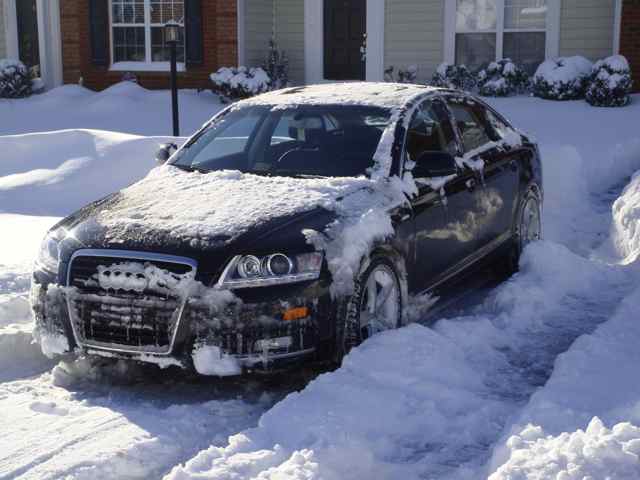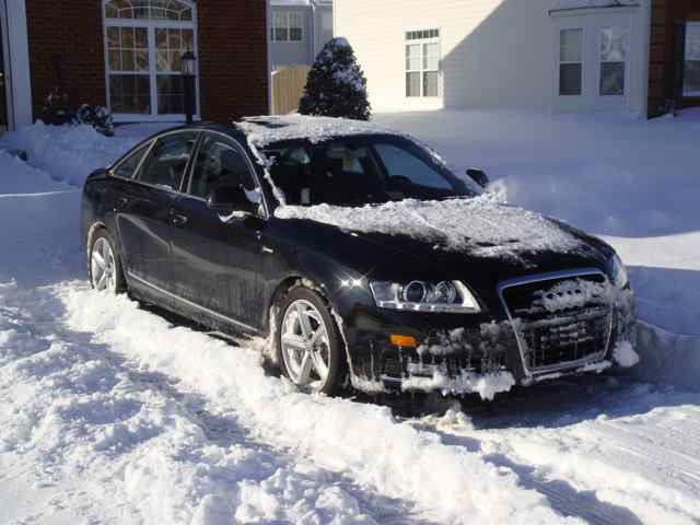 Took the two month old a6 out in the snow. It handled like a dream!! The sport suspension does lower the car a bit and the front air dam did scrap a couple of times, but other than that a perfect experience. I tried to get her stuck, even did a three point turn in a culdesac that hadn't been plowed. We got over 12inches but I was unsuccessful.