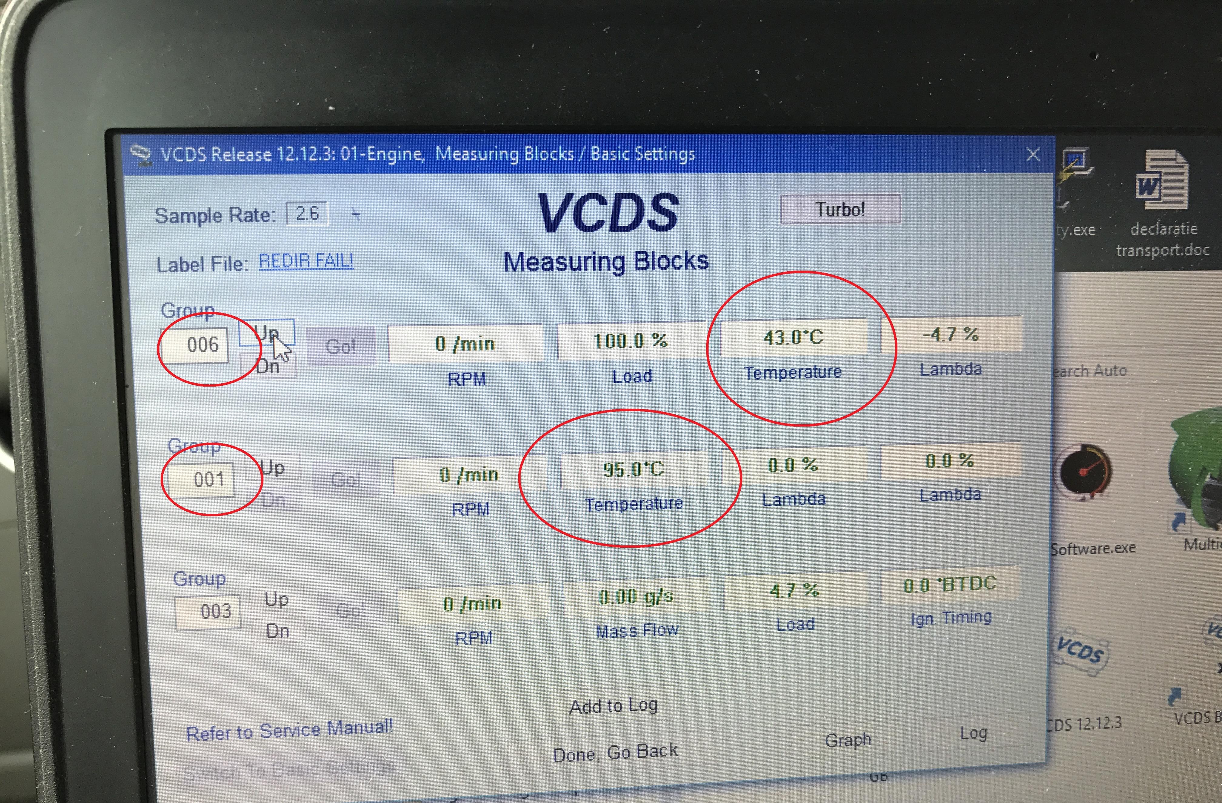 -in VCDS at Engine->Meas. Blocks-> Group 6 Field 3 it's showing a strange temperature(43-55 Deg) when outside temp is 17 Deg and coolant is at 90 Deg