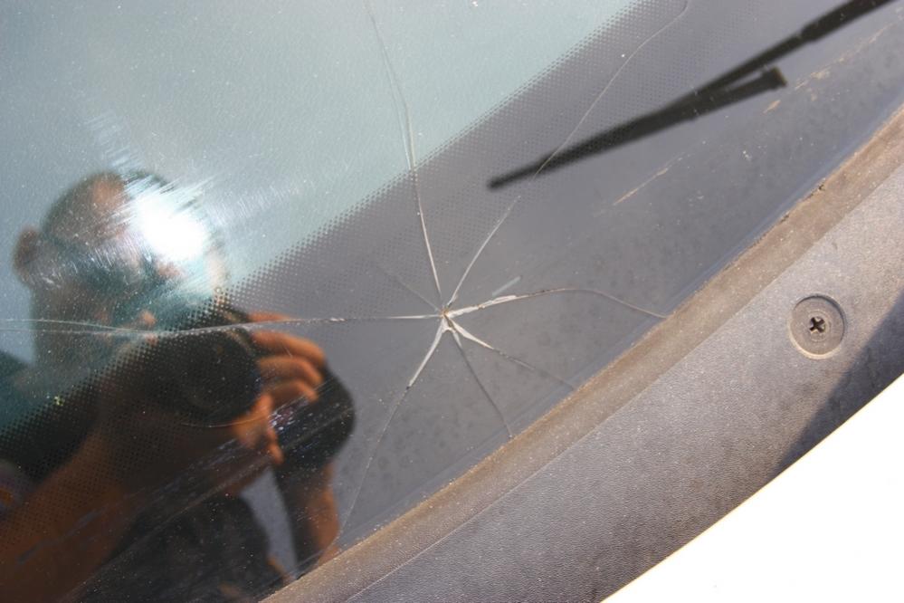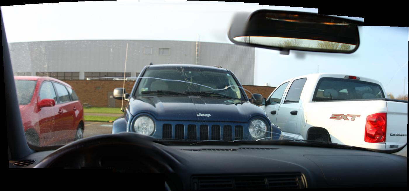 Out cleaning the car waiting for windshield!