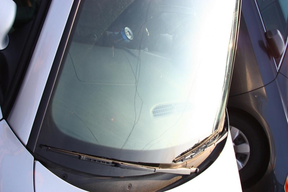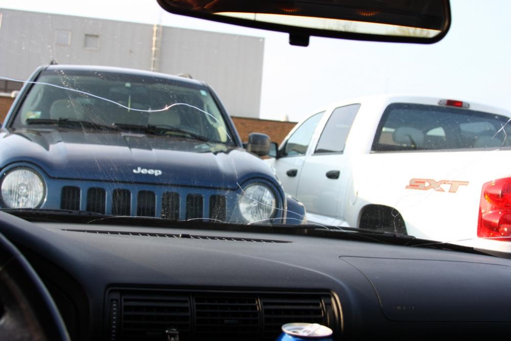 So on todays game plan. New Windshield! When I bought the car it was already cracked some but has gotten worse since. It looks like the guy didn't have a wiperblade on and the arm slammed down! Pics of how it sits right now. I'll update as the day goes on!