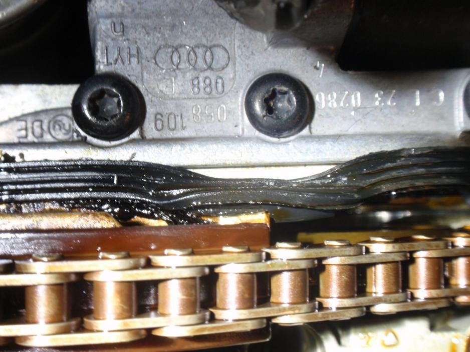 Here is a few pics of the botched job, that is now redone properly. Now mind you, this *** hole did only the valve cover gasket, he never suggested doing anything else. Not both front cam seals, no half moon or gasket seal.