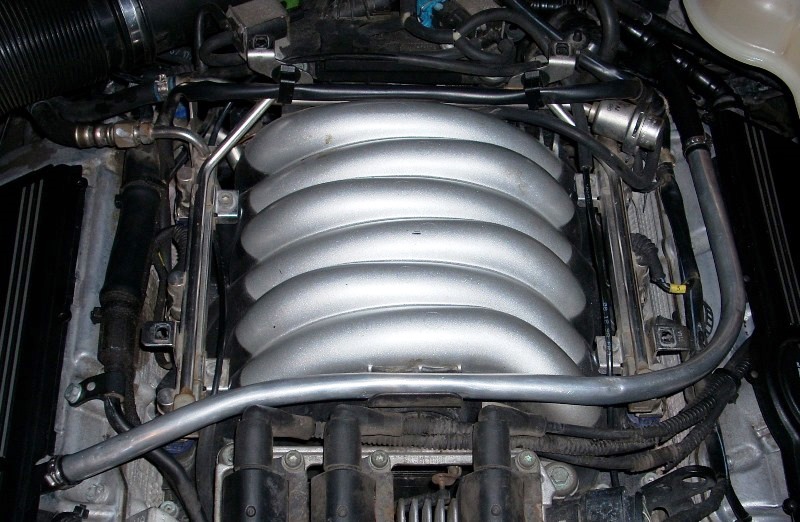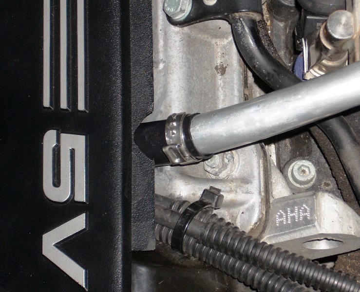 I replaced my brittle plastic crankcase breather hoses with aluminum pipe like I saw on bshusted's V6. Turned out OK, I'm not a great pipe bender.