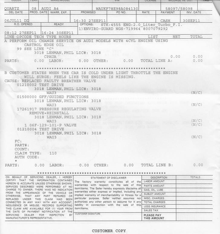Interesting. No part number listed for "replaced faulty breather valve" and I can tell you that the only part number on there is not a DV. The DV part number is 06H145710D (I just replaced mine a couple months ago).