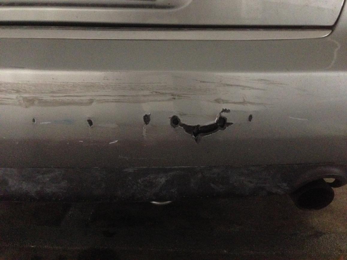 It's a bit unsightly, but not devastating, obviously. But still, I'd like to get it taken care of. So I took it to a nicely-reviewed local body shop, and the estimate was about $1200 to replace and install a new bumper cover (!!!). This was for an aftermarket part, OEM would be even more costly. They advised against covering/filling the holes with an epoxy or something and said it wouldn't last long.