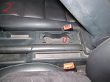 For Center console removal, get in the back seat and pull the ash tray out. There are two 13mm nuts with washers under there to remove. You are now finished in the back seat. (See picture 1).