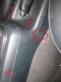 Get in front seat and pull out double cup holder on center console beside emerg brake and there is another bolt there. (See picture 2) On both sides of the center console vertical section, up below the shifter, is a screw covered with a plastic cap. (See picture 3). Remove and you can pull the center console up and back about an inch or two without removing the emerg brake plastic (I removed my emerg plastic but I don’t know if I needed to). If you need to remove the emerg brake leather handle and plastic fairing, there is a little plastic plug under the leather handle at the rear end that needs to be popped out. My cig lighter was plugged in up near the shifter but you don’t need to unplug it unless you want to completely pull out the center console.