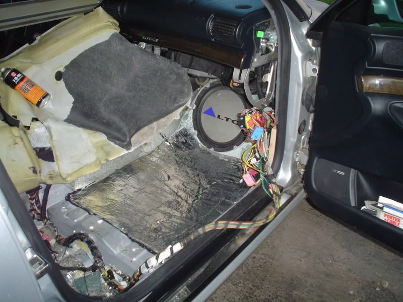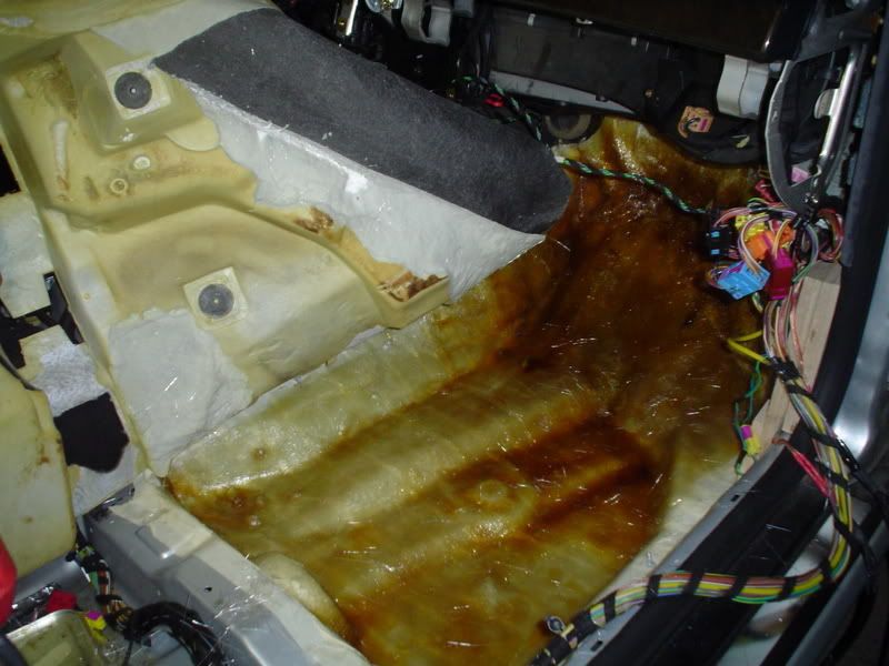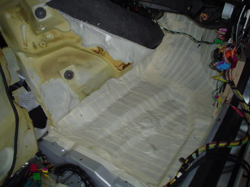 Audi was kind enough to fill in the cavity where the pedals are in the European version with foam on the US model. The floor is also filled in with about 3 inches of foam or more. I've removed ALL this foam, applied sound dampening materials (Dynamat), moved the wires, and started fiberglassing...