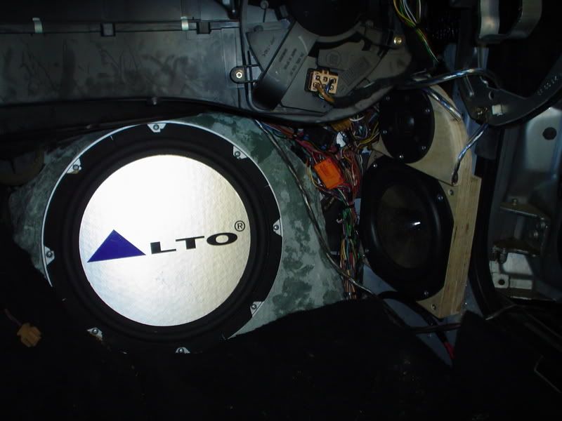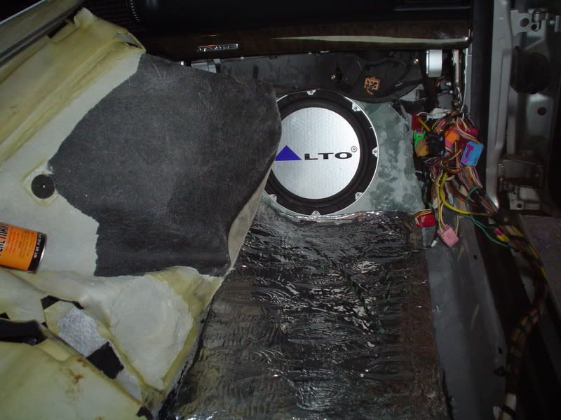 The carpet's been cut, and I'm currently making the grille to fit over the subwoofer. It looks totally stock, and sounds EXCELLENT! More to come...