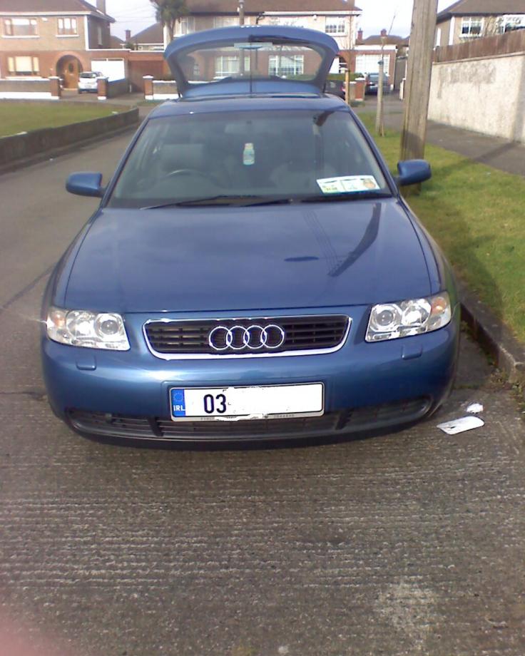 its a blue 1.6 03 a3 8L so far i'm tinkin 17 or 18 rs4 wheels but i also like the amg cl 64 wheels lowered 30mm, bagdeless grill, front fogs and mayb exhaust tip.