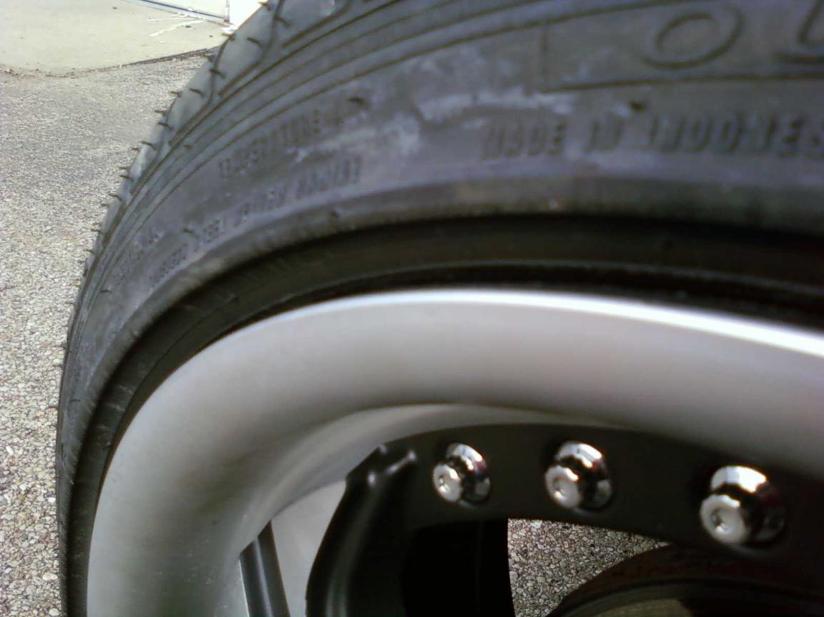 It's hard to get a good pic but here is what I got. It's definately just the way the tire is made but I can see what you are saying from the other pics. I just de-badged her tonight and like pa4ul said, once I lower it the look will be complete, well tack on some clear corners, HID kit and clear side markers and then I should be done with the exterior and time to move inside and install my audio / video system that I have been too lazy to get to yet, then on to the performance mods