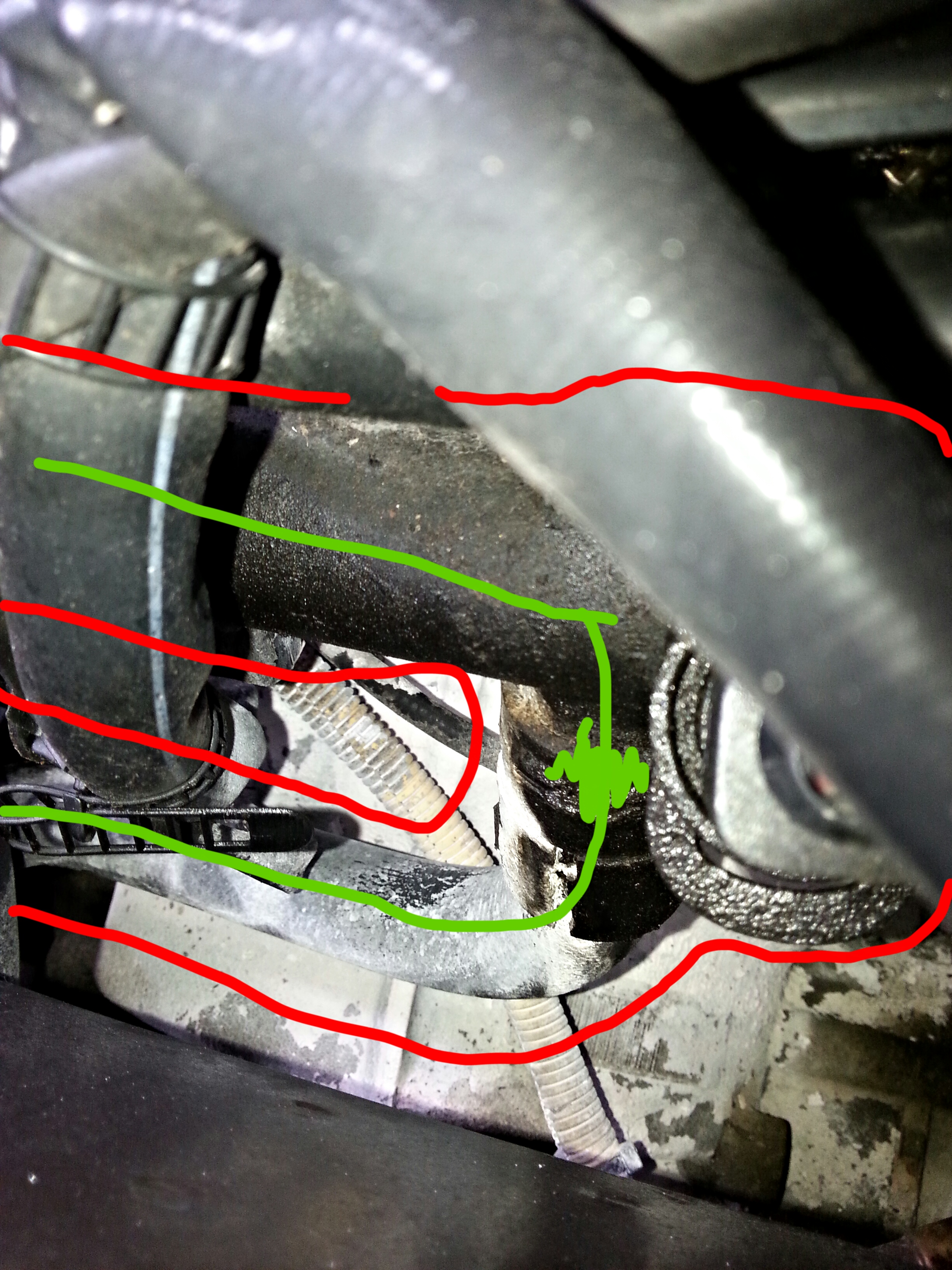 I thought it was the rear coolant flange until he pointed out the crack in the tubeing/piping.