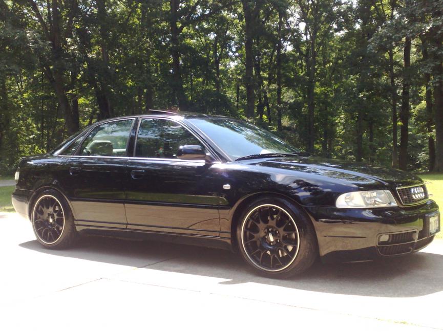 Anyways, my S4 currently sits on 18x8.5 BBS CH "Black Edition" wheels that I purchased last April from GMP Performance. They are wrapped in no other than BFGoodrich G-Force T/A KDW tires (225/40ZR18). Both rims and tires were installed at the same time and have just under 10,000 miles. Total amount of money put into this combination in April was right at $3000. I love these wheels to death but I'm really starting to feel like I want to go with some 19s next spring. I'm basically trying to get an idea if anyone here would be interested in purchasing this fine set? Keep in mind these are still in great shape with plenty of mileage left so if interested feel free to make an offer...and if you aren't interested, maybe you could help me determine what a good asking price would be? I live close to the St. Louis area. I really would hate to ship them but I guess if the buyer really wanted/needed me to I could do so. Thanks